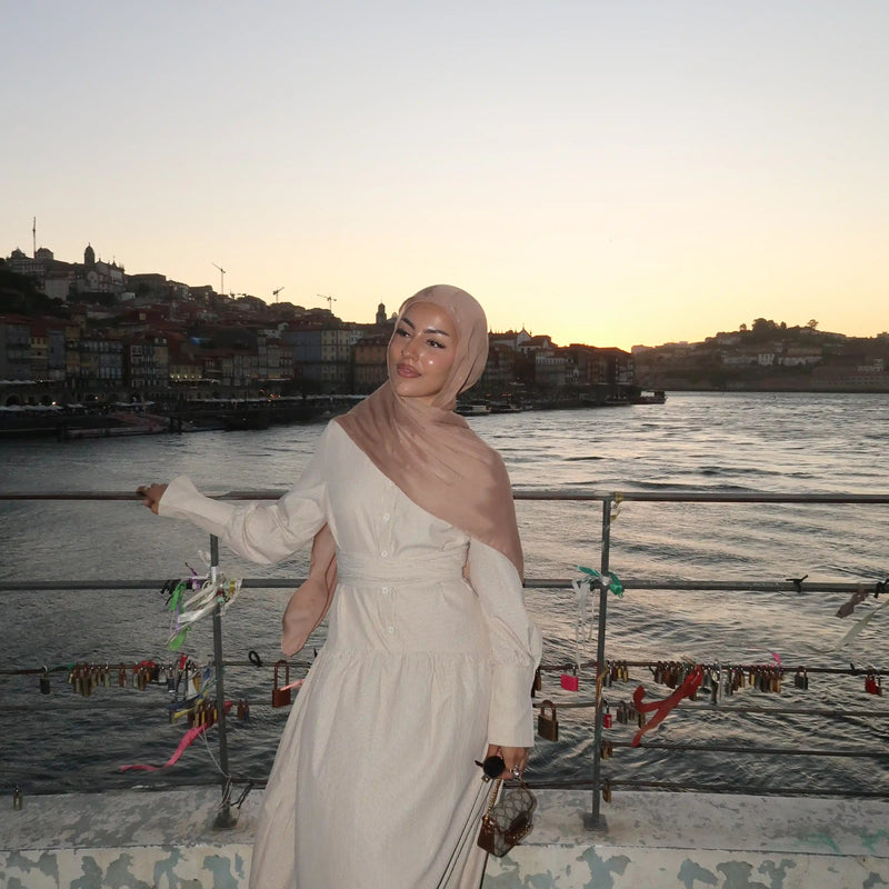 Matching Butter Modal Hijab Set - Biscuit