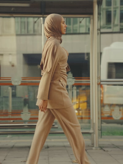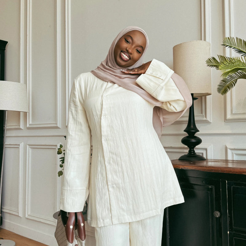 Matching Butter Modal Hijab Set - Almond