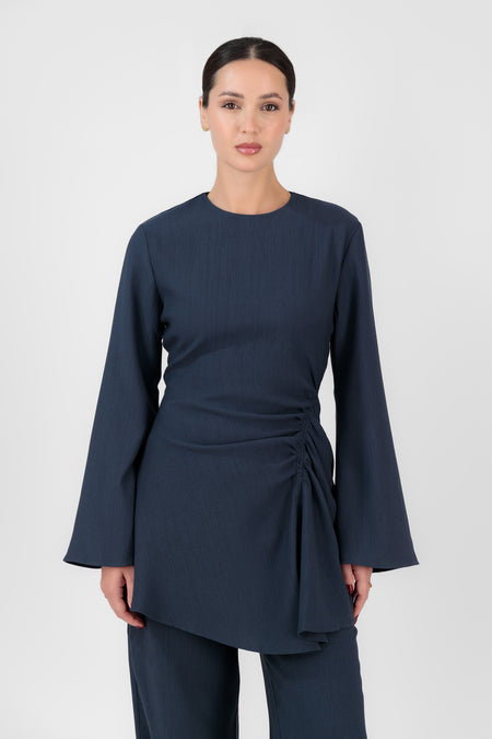 Ruched Detail Tunic - Navy