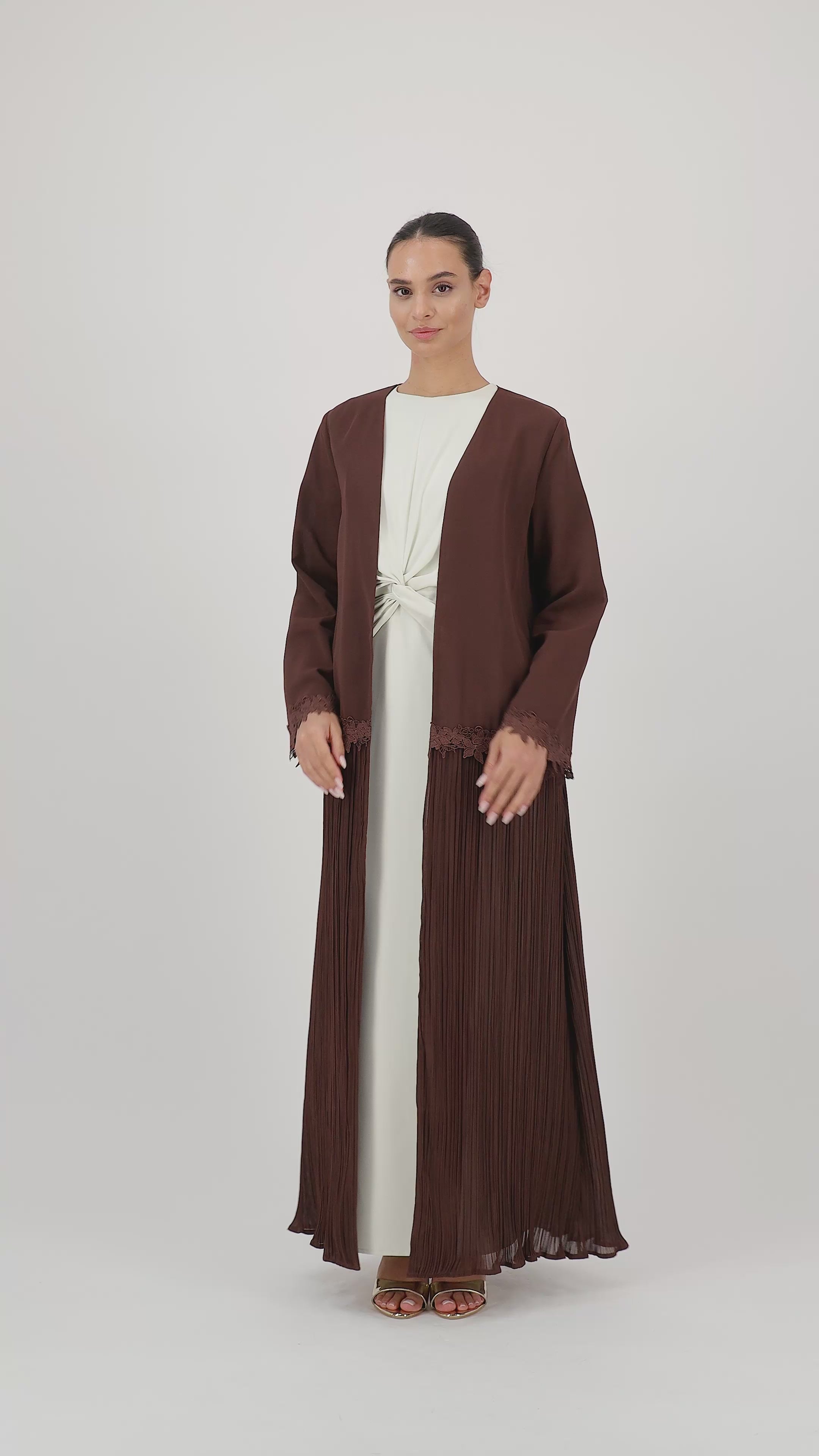 Floral Trim Pleated Abaya
