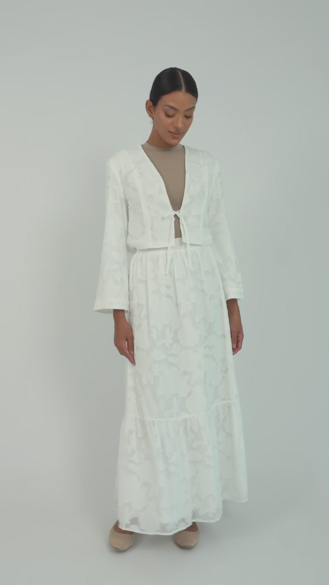 Floral Cut Out Cropped Cardigan and Skirt Set